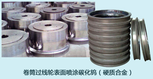 金屬制線設(shè)備的拔絲輪、拔絲塔輪、拔絲缸、收線盤(pán)、導(dǎo)向槽等零件表面噴涂碳化物陶瓷涂層,對(duì)一些耐磨性要求高的工件表面,采用進(jìn)口超音速設(shè)備可噴涂碳化鎢(硬質(zhì)合金)涂層,硬度可達(dá)到HRC7.5 。遠(yuǎn)比磨具鋼或冷硬鑄鐵的耐磨性高,還可使這些零件的基件采用普通鋼材或鑄鐵制造,既降低成本又延長(zhǎng)使用壽命。