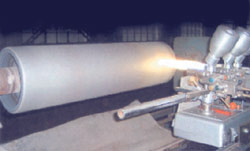 鋼鐵工業中的大量設備工件,長期滿負荷的運行在高溫、氧化、高溫腐蝕、機械磨損以及熔融金屬腐蝕的惡劣環境下,致使設備部件極易遭受損壞,諸如轉爐罩裙、煙道的高溫腐蝕、連續鑄造生產線支承輥、導輥、夾緊輥的冷熱疲勞、板坯連鑄線結晶器、輸送輥及各種工藝輥的機械磨損,冷軋機生產線的緊張輥、矯直輥的疲勞磨損,連續退火爐爐底輥的高溫腐蝕磨損、積瘤,連續熱侵鍍生產線的沉沒輥、張緊輥、導向輥侵受熔融金屬侵蝕和磨損等故障問題,都可通過熱噴涂高強度、高性能的材料予以解決。