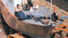 汽車發動機基座、同步環、曲軸磨損修復和預保護強化,齒輪箱軸承座、油缸柱塞、前后橋支撐軸、門架導軌、發動機主軸瓦座、搖臂軸、半軸油封位、銷軸、缸床密封面、輪轂、萬向節的磨損處的耐磨涂層修復及活塞環、氣門挺桿的噴涂制造;挖泥船耙頭、仿磨環、泥斗、絞刀片、鏟齒、泥泵葉輪、船舶的艉軸、艉軸套、偏心軸套、齒輪傳動軸、泥泵水封頸、泥門滑板、瓜沙機刮板、船舶螺旋槳、推進器、耐磨涂層噴涂;甲板、船體、護欄、鐵錨等熱噴涂耐腐蝕合金材料和塑料。